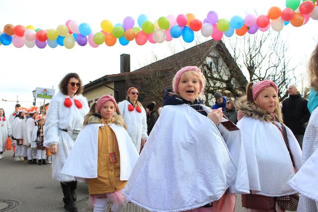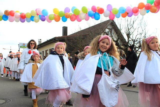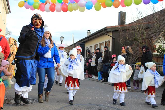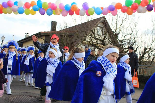 Bei bestem Narrenwetter zog es Hexen, Piraten, Prinzessinnen, Clowns und viele mehr auf die Gass und endlich konnten die Kleinen auch mal einen Faschingsumzug miterleben.