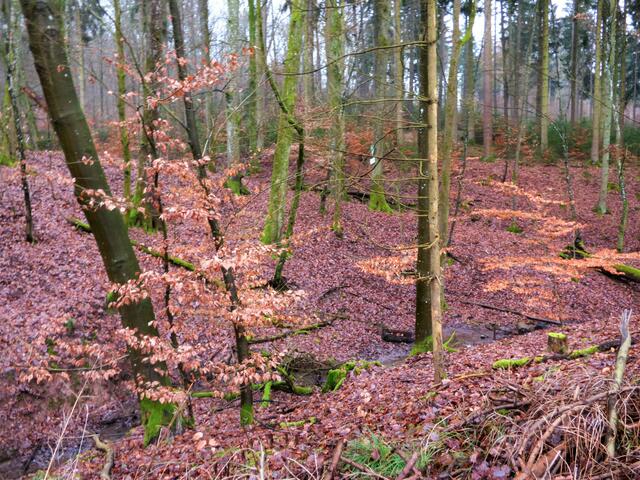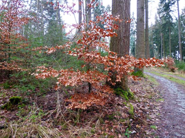 Deshalb freue ich mich um so mehr, dass ich Ende letzter Woche das zwar diesige Wetter, aber doch mit angenehmen Januar-Temperaturen, zusammen mit einer Freundin auskosten konnte, obwohl der jetzige Winterwald bestimmt auch bezaubernd ist. Sie stiefelte mit mir durch den Heilbronner Stadtwald, zeigte mir sehenswerte und historische Plätze und ansonsten genossen wir bei diesem feuchten Wetter das Gefühl des "Waldbadens".