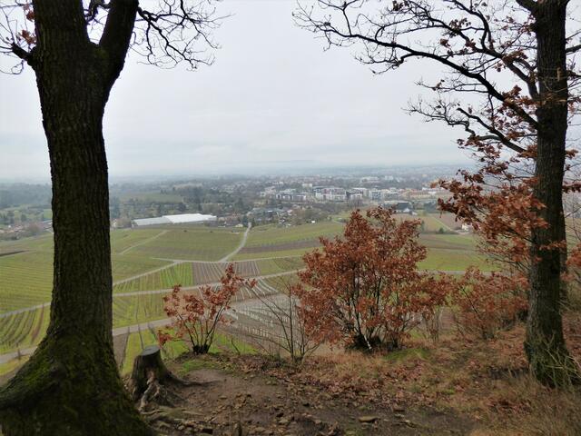 Weiter ging es zu der Ludwigsschanzen-Aussichtshütte mit weiten Ausblicken über die Weinberge und auf Heilbronn. Der Staufenberg war gut zu erkennen und dahinter die Dampfsäule von Neckarwestheim. In der Stadt zu unseren Füßen fielen 3 würfelförmige Gebäude ins Auge, deren Außenfassaden mit unterschiedlichen Verkleidungen besondere architektonische Strukturen aufwiesen. Richtige Hingucker......Es handelt sich wohl um Verwaltungsgebäude.
