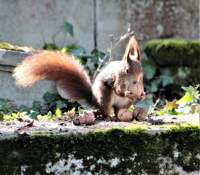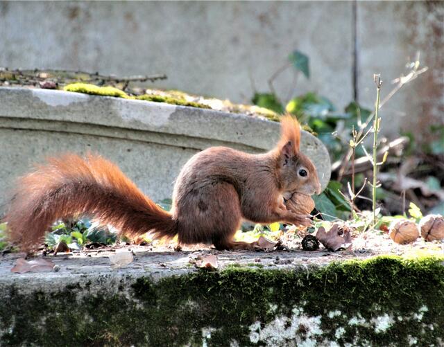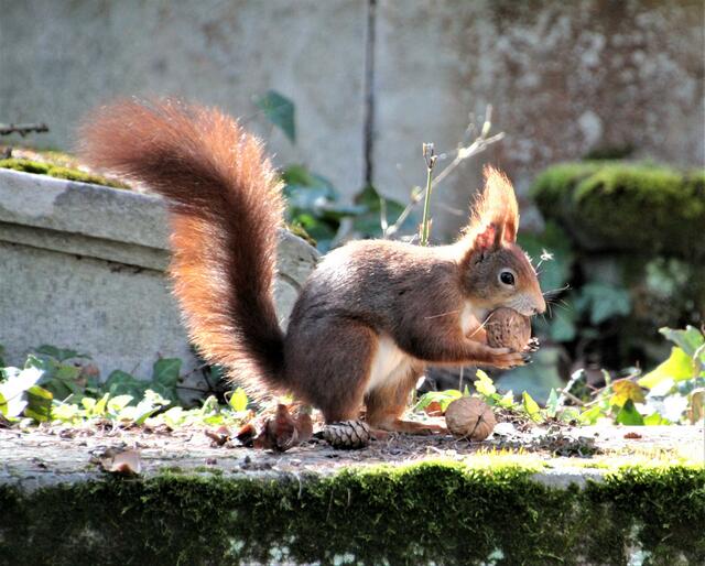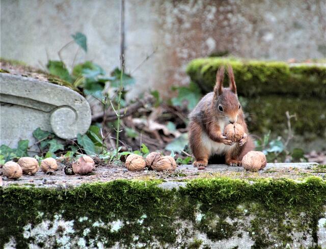 Vorige Woche auf dem Hauptfriedhof Heilbronn. Bei den quirligen squirrels. Sie bekamen Walnüsse vom feinsten, ganz und geknackt. Mein verwendetes Objektiv von Tamron 18 - 270 mm F/3,5-6,3. Während ich mich bemühte, die flinken Hörnchen zu fotografieren, hörte ich eine Stimme im Hintergrund: "Aller Anfang ist schwer" Na denn, bekanntlich ist ja noch kein Meister bzw. Meisterin vom Himmel gefallen.