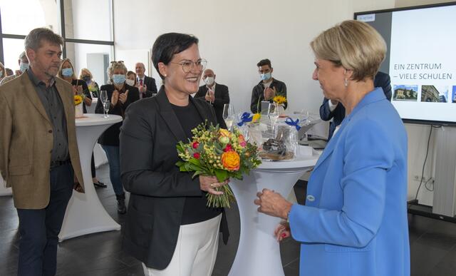 Die neue Geschäftsführerin Anja Biller dankte Peter Baust ebenfalls mit persönlichen Worten und gab in Ihrer Rede mit dem Titel „Zurückblicken – Vorausdenken“ auch einen Eindruck davon, welche Aufgaben und Weiterentwicklungen sie für das Bildungszentrum sieht. Unter anderem führte Anja Biller aus, „b esonders Kinder- und Jugendliche sind von den Folgen der Pandemie betroffen. Gerade ihre Probleme müssen wir wahrnehmen, auffangen, Halt und Orientierung geben. Die Erfahrungen der letzten eineinhalb Jahre haben gezeigt, dass das Miteinander im Klassenzimmer durch keinen digitalen Unterricht zu ersetzen ist, möge er noch so gut sein. Denn Schule ist Beziehung.“