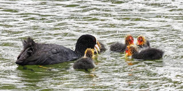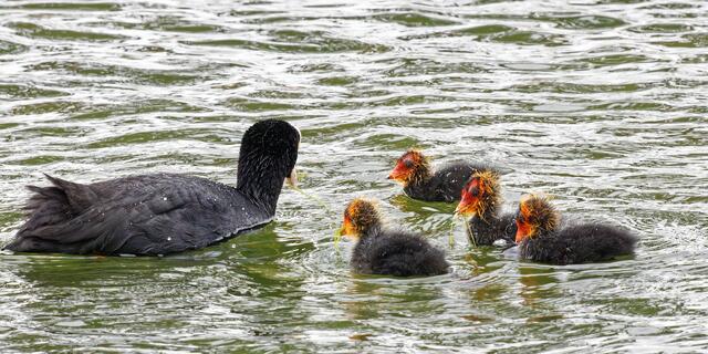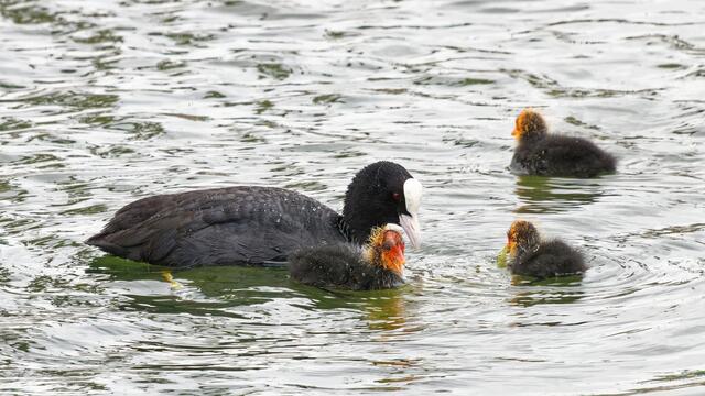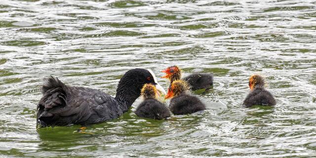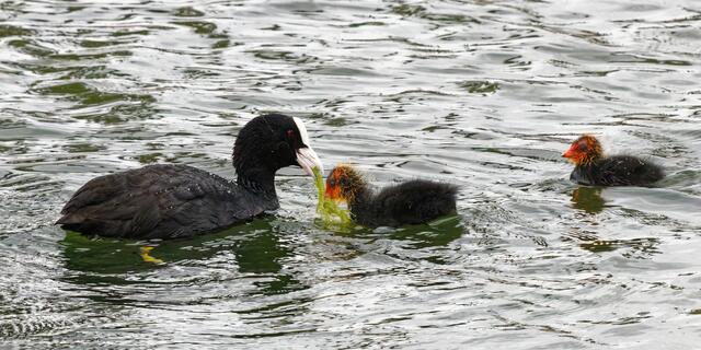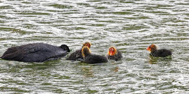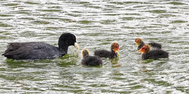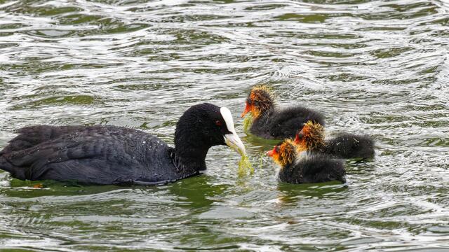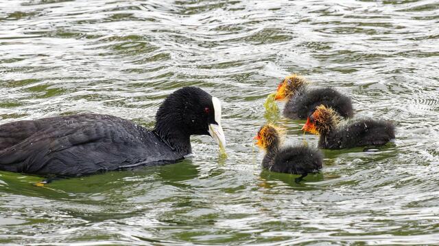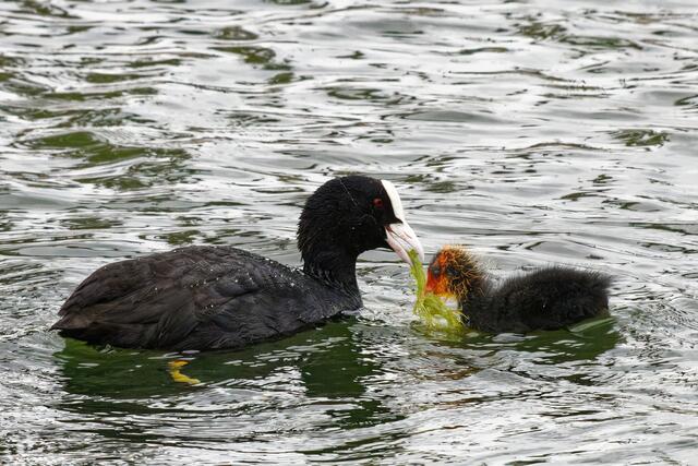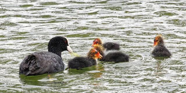 Hier der zweite Teil meines Besuchs am Neckarbogen am 20. Mai 2021 - Mama Blässhuhn und ihre Kinder bei der Fütterung.