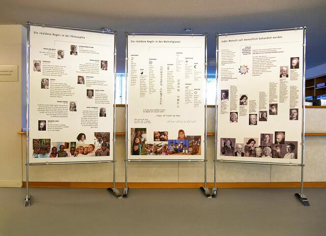 Vom 28. April bis zum 31. Mai findet die Ausstellung „Weltethos“ in den Räumen der Sparkasse in Künzelsau statt. Am Beispiel von acht großen Weltreligionen werden die Gemeinsamkeiten der Religionen bezüglich ihrer ethischen Kernbotschaft aufgezeigt.