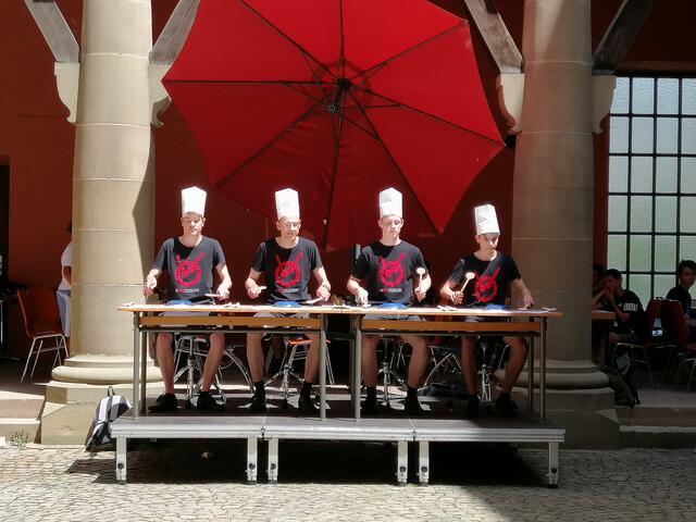 Doch es wurde nicht nur Schach gespielt. In der Mittagspause begeisterte die Gruppe pÖHRcussion von der Musikschule Öhringen mit einer brillanten Aufführung zweier Stücke. Und auch die Geselligkeit kam in den Pausen nicht zu kurz. Die Damen vom vereinseigenen Verkaufsstand versorgten Spieler und Gäste mit Kuchen, Brezeln und Getränken. In der Mittagspause gab es verschiedene Gerichte, die vom Restaurant