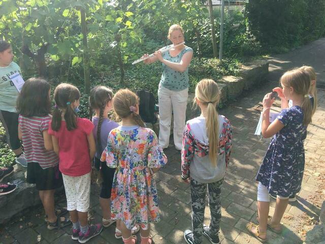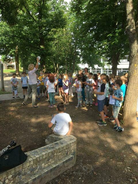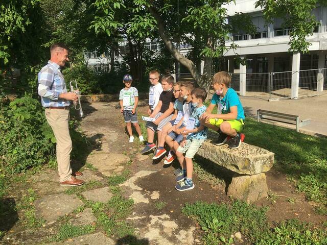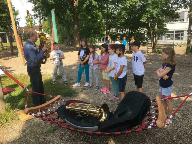 Schon vor den Ferien fand ein Instrumentenparcours statt, bei dem Musiklehrer die jeweiligen Instrumente vorstellten und präsentierten, bei dem die Kinder einen Riesenspaß hatten.