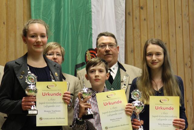 - Königliche Hoheiten: von li: Jugend-Kreisschützenkönig, Luftpistole-Marvin Breuninger, 1. Prinzessin, Luftgewehr-Simone Breuninger,1. Ritter, Luftgewehr Jugend-Marlon Schwab, Jugend-Kreisschützenkönigin , Luftgewehr-Tabea Breuninger