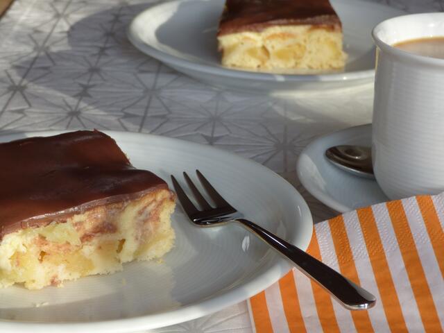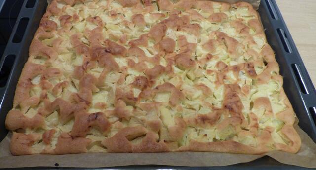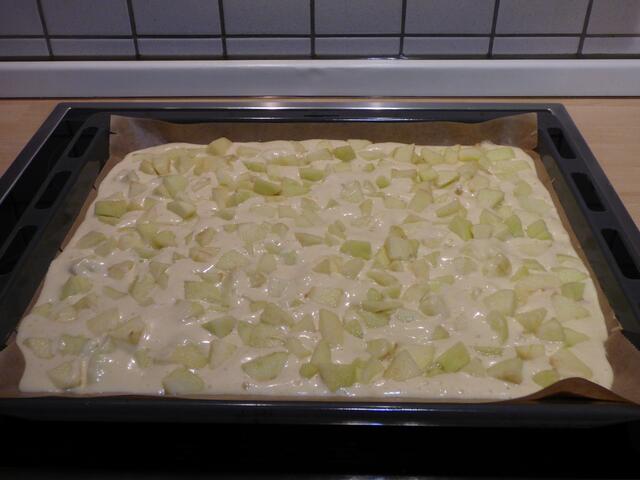 Hier ist die etwas einfachere Form dieser Apfelcreme-Torte. Die Zutaten bleiben dieselben! Veränderungen: 1. Im Gegensatz zur anderen Torte wird diese in einer normal großen Springform (26 cm) gebacken und der Biskuitboden nur einmal geteilt. Mohn habe ich weggelassen und anstatt dessen 50 g Mehl mehr genommen. 2. Das Kompott zwei, drei Minuten länger köcheln lassen, sodass es musig wird. Das erspart das Pürieren. 3. Nun den ersten Boden mit der Saft-Alkohol-Mischung beträufeln, ...
