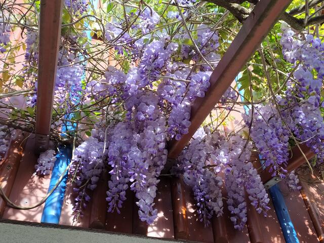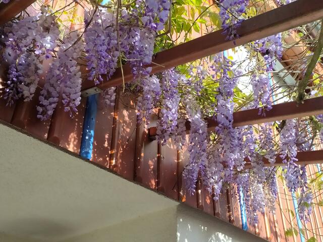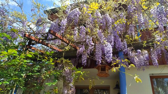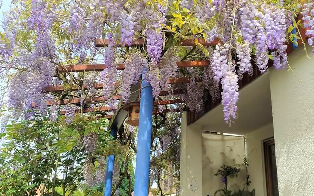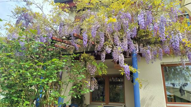 Unsere Glyzinie - auch Blauregen genannt - blüht wunderschön