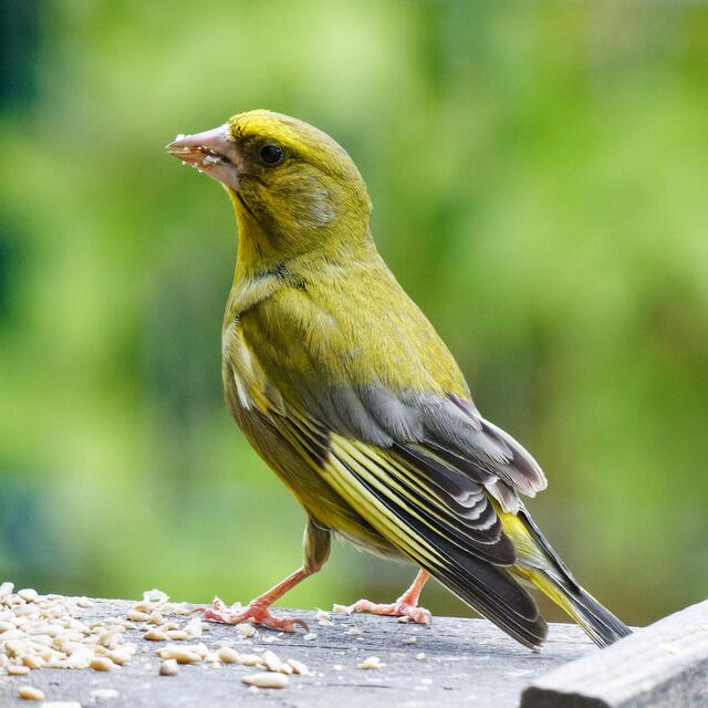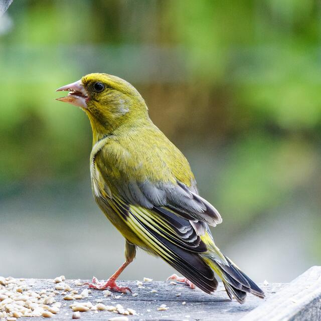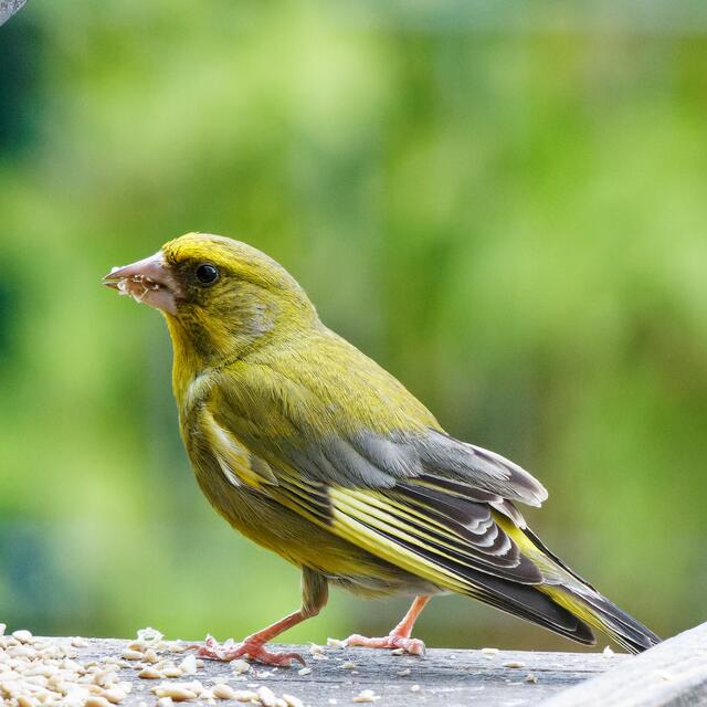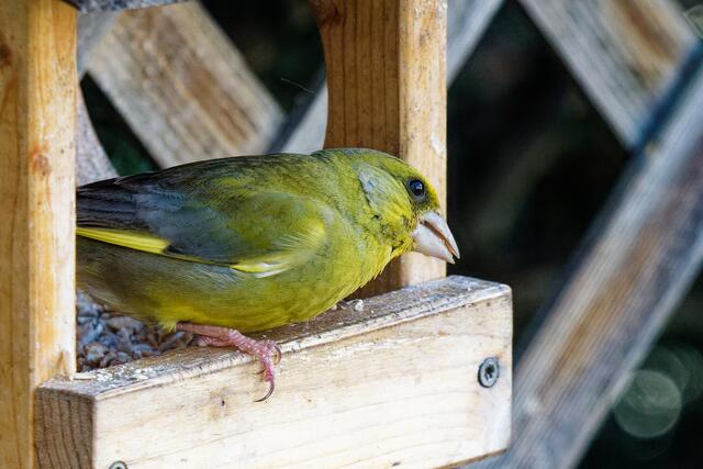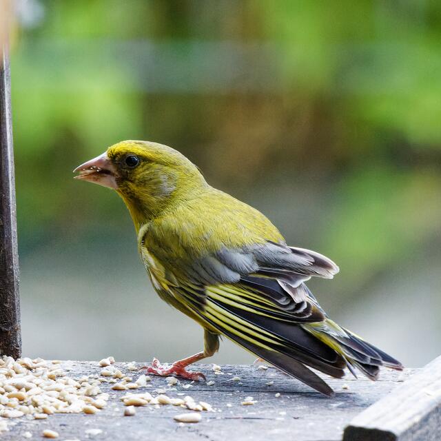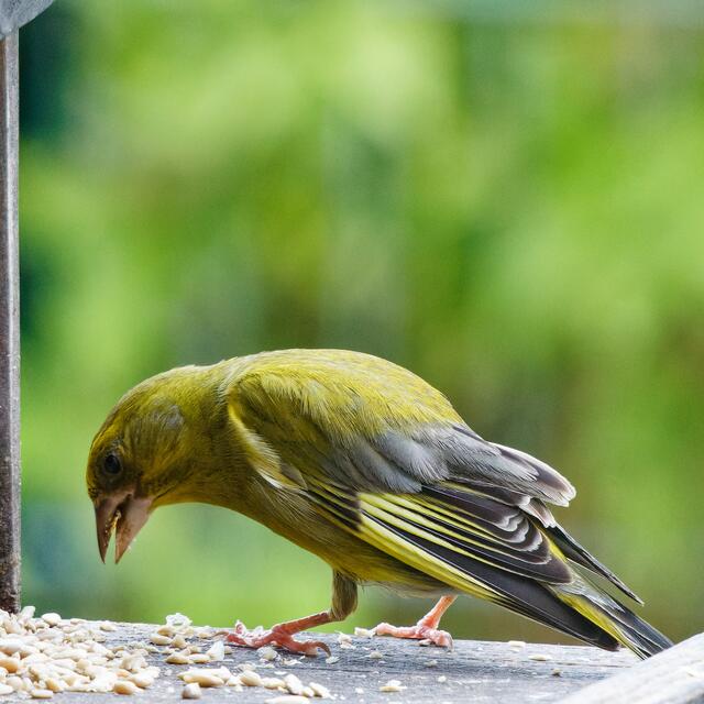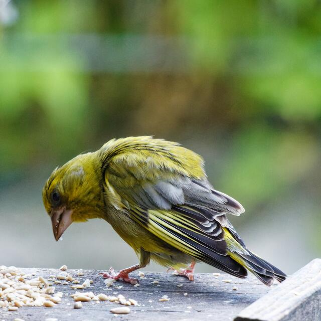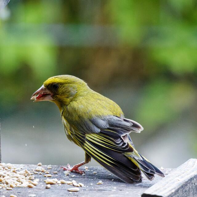Das Foto entstand letzten Sommer bei uns im Garten. Die Grünfinken waren Dauergäste.