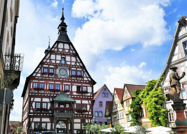 Der Name geht auf die fränkische Besiedlung, nach deren Eindringen ins römische Reich im 6. Jahrhundert zurück. Besigheim liegt malerisch an der Enzmündung in den Neckar und ist vor allem wegen seiner Altstadt und der schönen Fachwerkhäuser bekannt. Es hat eines der besterhaltenen mittelalterlichen Stadtbilder in Süddeutschland.