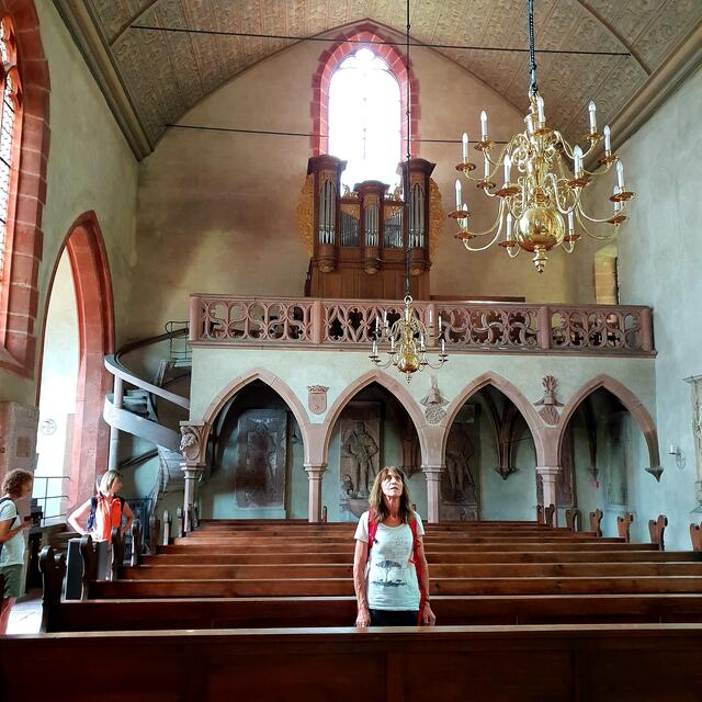 Von der Stadtbahnhaltestelle in Hirschhorn ging es direkt mit 22 % Anstieg hinauf auf den Neckarsteig. Das erste Highlight der dritten Etappe war das Freischärler Grab. Der Rote-Bild-Weg ist ausgebaut, aber am Bildstock kann man über den Grenz-, Handels- und Kirchweg einiges erfahren. Interessant ist, dass man sich lange Zeit auf dem Kunstbank-Weg bewegt. Nach dem kurzen Abstecher zum Schaubild wird es dann sehr idyllisch und der schmale schöne Waldweg über den Darsberg ist besonders im Herbst...